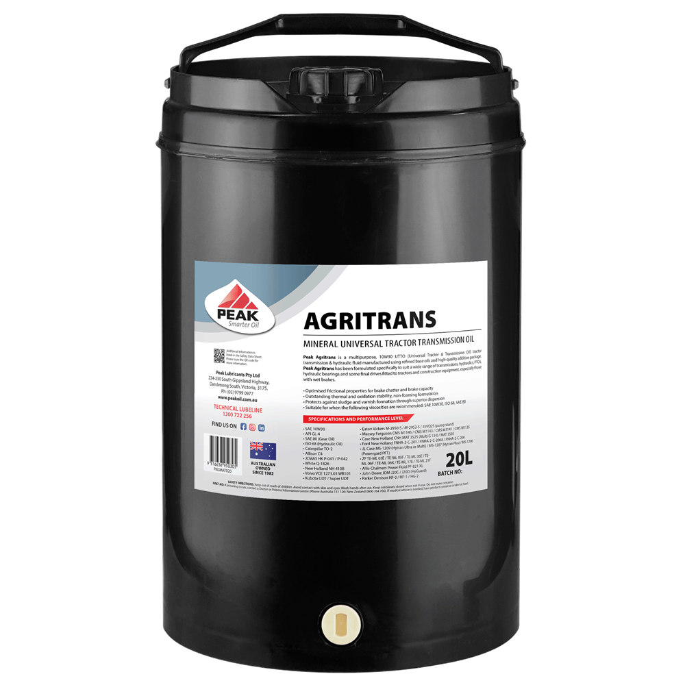 PEAK AGRITRANS is a multipurpose, 10W30 UTTO (Universal Tractor & Transmission Oil) tractor transmission & hydraulic fluid manufactured using refined base oils and high-quality additive package.