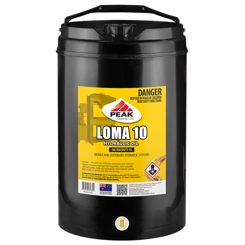 PEAK LOMA 10 is a high-performance, anti-wear hydraulic oil formulated using highly refined base oils with anti-wear, oxidation and corrosion inhibitors and anti-foam additives, resulting in a thermally stable fluid capable of handling high loads and temperatures. It is compatible with most pumps, valves and seal materials used in hydraulic systems.