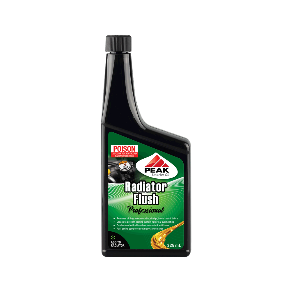 PEAK RADIATOR FLUSH is a non-acidic radiator flush containing organic salts. It safely removes scum, oily residue, sediments, rust, deposits and other degradation products from the cooling system.